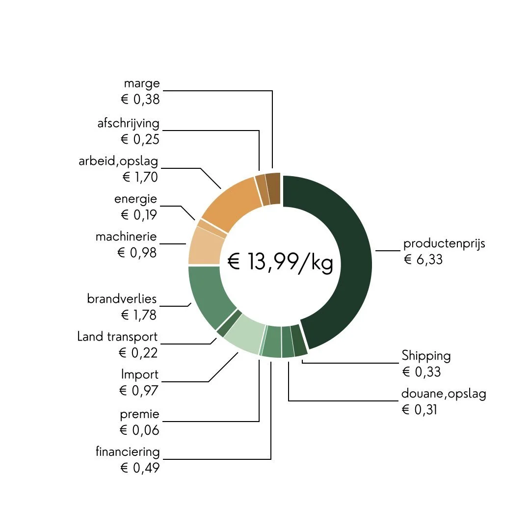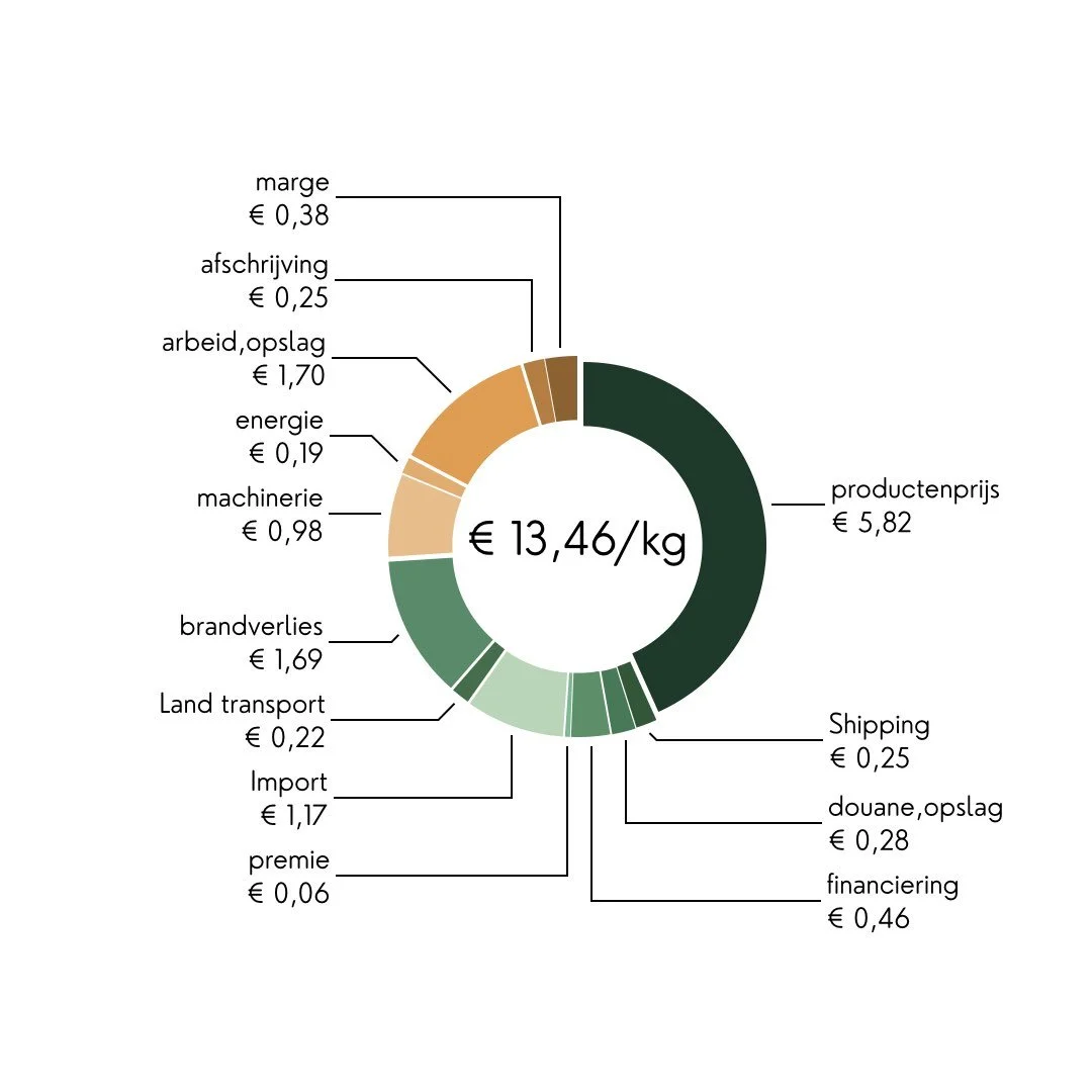 PRICE WHEELS offer a transparent breakdown of exactly who receives what for every kilogram of coffee. This data is built on real-time costs and is adjusted annually to reflect the evolving economic realities of our farmers, ensuring our pricing remains both accurate and equitable.