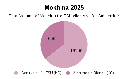 Here we show you the volume we bought for different qualities for 2025 harvest. This is an overview of how we buy coffee in these countries and to understand why TSU is an important partner for them.