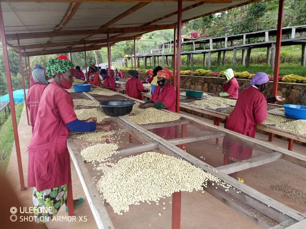 Since 2016, we are pioneering village lots by separating the coffees from our two favourite collection point lots on the cupping table: Gitaba and Kavumu. Organically produced (and certified), emphasis on women empowerment. : Coko supports its members by giving them a cow for manure and milk. They also offer chickens. The community works closely together and during the off-season, women weave baskets and clothes.