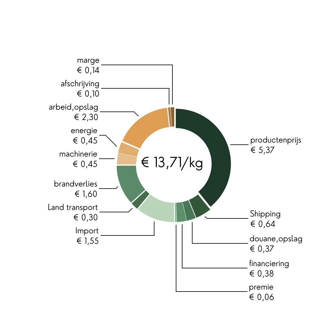 We imported a “community lot” of a smallholder farmer, via the export license of the Sheka Estate. The price we paid was $2.50 per lb, which translates to $5.50/kg which against the exchange rate of that moment landed at €5.30 per kg.